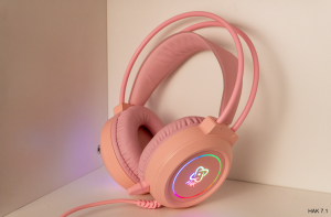 Tai Nghe Chụp Tai HAK Có MIC Kết Nối Jack USB (7.1 Surround) | Hồng
